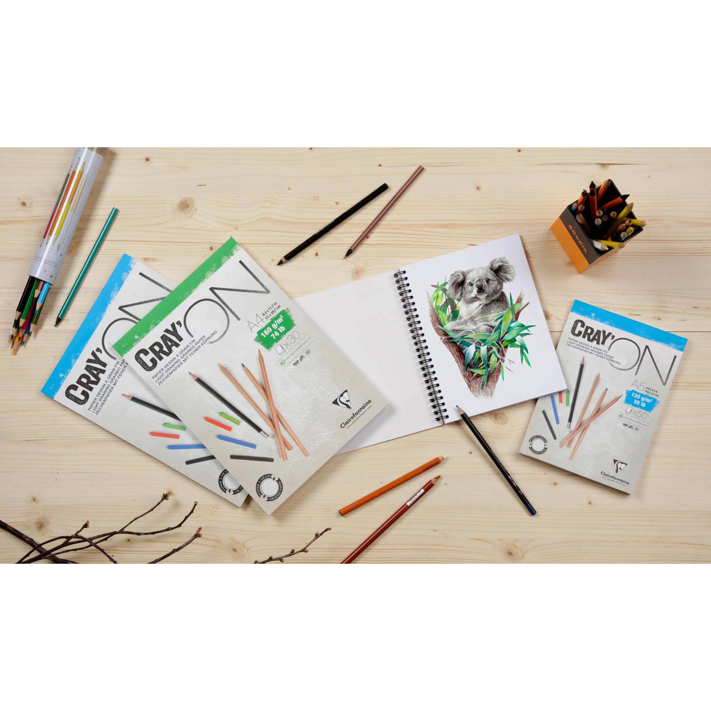 Clairefontaine - 975028C - Cray'ON Trocken Technik Skizzenblock, 2x A3, 30 Blatt, 160g